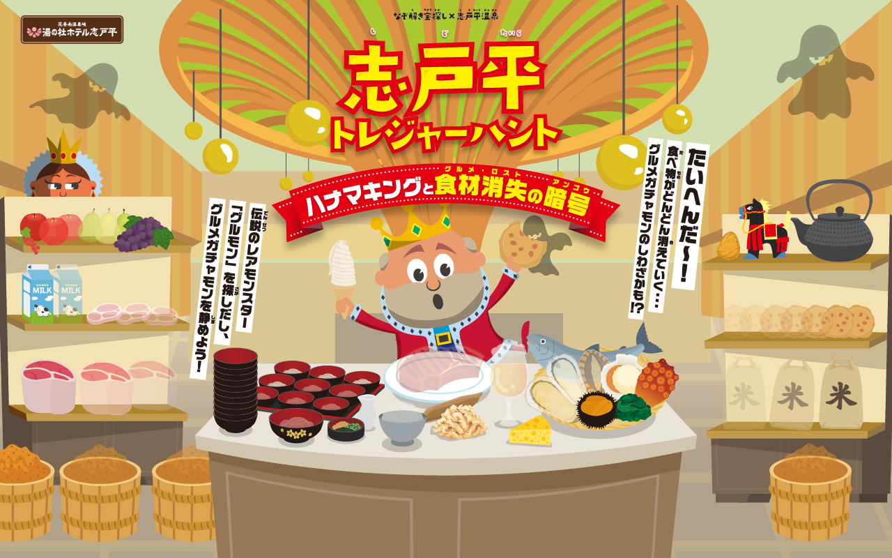 ぱなモンは、花巻が大好きで、ついついお気に入りのものを集めたり名産品を好んで食べてしまうようなのです。中には、美味しいものを何でも作れるぱなモン“ナゾノモンスター”がいるという噂です。名前はま